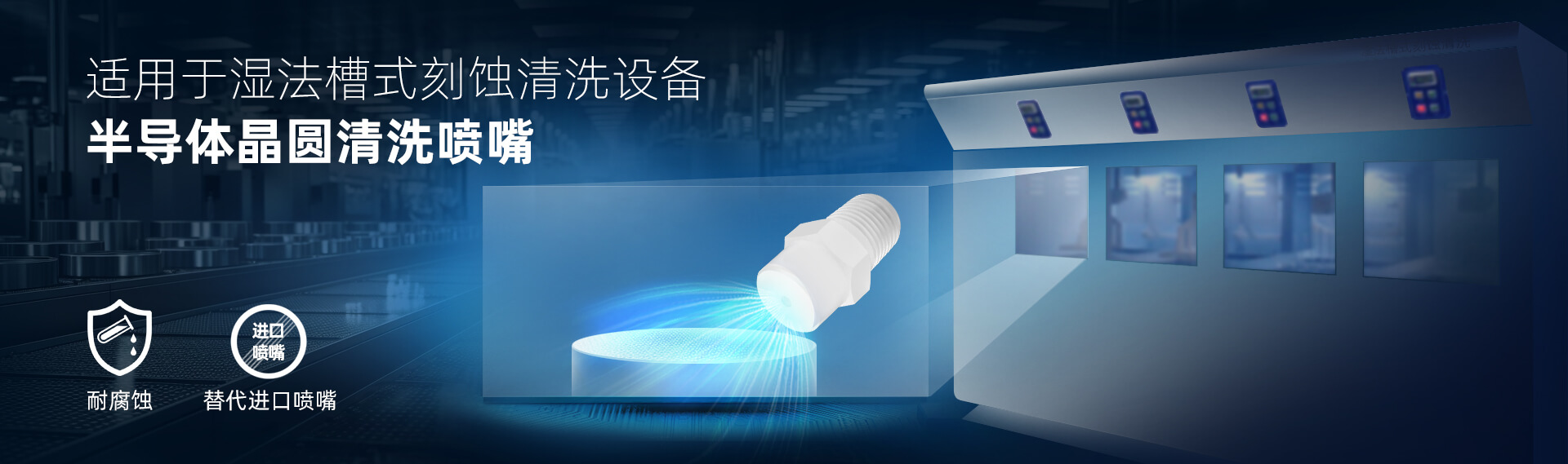 產(chǎn)品:實心錐噴嘴 應用: 噴嘴安裝于槽式濕法刻蝕設備里,通過配合不同化學藥液,有效去除晶圓表面顆粒、有機物和金屬離子,應用于晶圓制造、MEMS制造,以及功率器件制造領域。 工業(yè)噴嘴專業(yè)制造商🔥 品質(zhì)可靠·規(guī)格齊...
